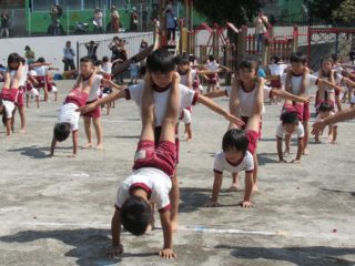 年長組は、組体操、団体競技、リレー、和太鼓を行いました。