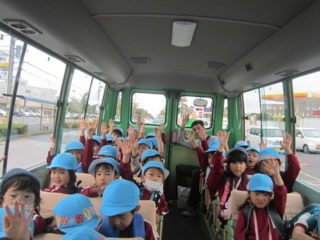 あと〇〇回寝たらお芋掘り!!と楽しみにしていた子どもたち。外の景色を眺めたり、どのようなお芋が掘れるか話し合いながらバスに乗って向かいました。