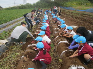 10月9日(水)にあやめ・ばら組、17日(木)にこすもす・ゆり組でお芋掘り遠足に行きました。