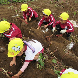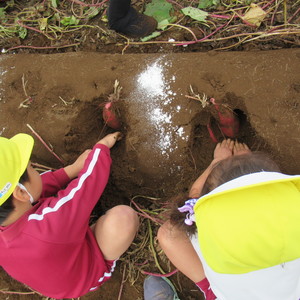 16日(水)にさくら組・うめ組が、21日(月)にもも組とふじ組でお芋掘りに行ってきました。