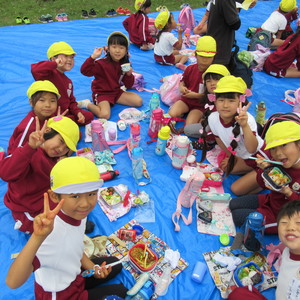 外で食べるお弁当は格別においしく、大好きなおやつもお友だちや先生と交換して楽しんでいました。