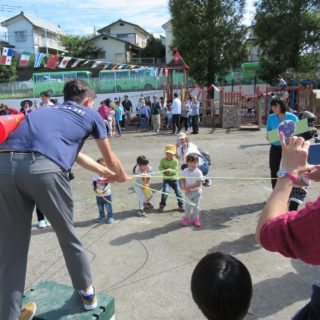 気持ちのいい晴れ間の元、今日は未就園児運動会を開催しました。