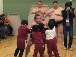 大きなお相撲さんを見て子どもたちは大興奮!お相撲大会への期待もさらに高まったようでした。