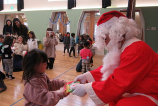 一人ひとりサンタさんからプレゼントをもらうと、少し緊張しながらも『ありがとう』とお礼を言うこともできました。