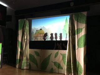 「三匹のこぶた」はお話を知っているお友だちも多くいましたが、影絵で見るお話は新鮮だったようで、歓声を上げて大盛り上がりでした。