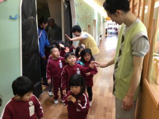 最後にお別れのタッチをしてもらい大満足の子どもたちでした。
