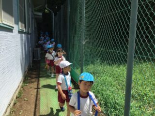 園庭だけでの戸外遊びでは、密になることもあるため、幼稚園の隣にある13号公園を活用して戸外遊びを楽しんでいます。