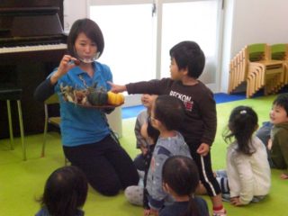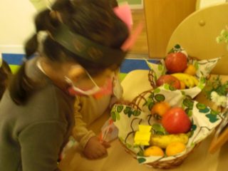 また、りんごやみかんをカゴに飾って収穫祭のお祝いもしました。
