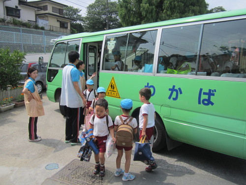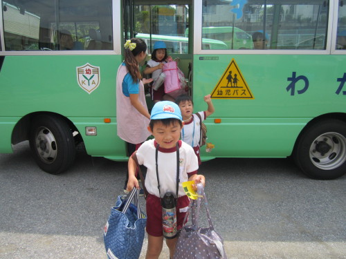朝、バスから大きな荷物を抱えて降りてくる子どもたちの表情は、これから始まるお泊り会への期待でいっぱいでした。