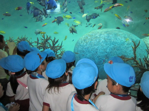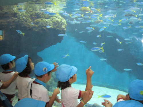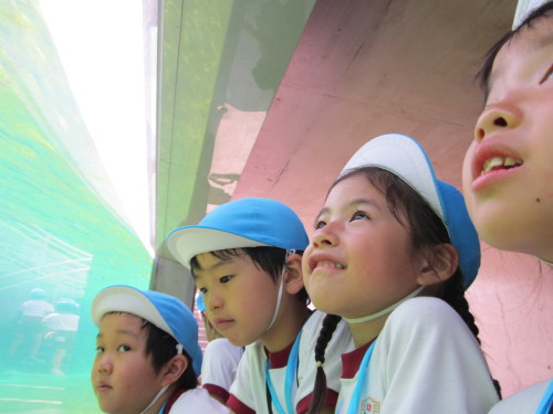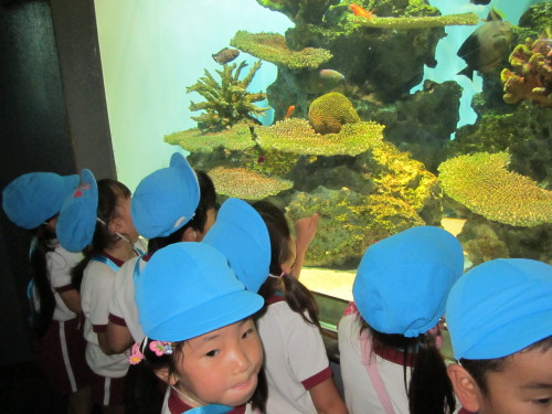 初日は、葛西臨海水族園へ行きました。水族園をとても楽しみにしていた子どもたち!『マグロはいるかな?サメは大きいかな??』と期待を膨らませていました。実際に水族園の中に入ると、『すごいね。きれいだね!』と目を輝かせながら夢中になってみていました。