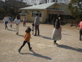 今日のエンジェルくらぶの体操は縄跳びを使って遊びました。