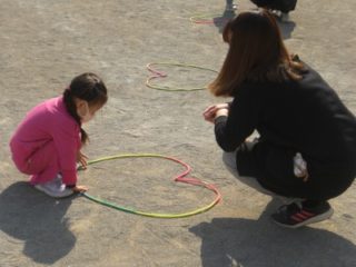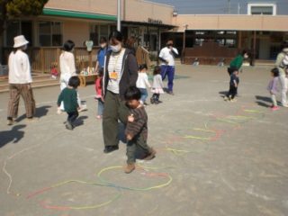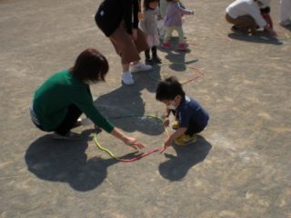 最後は、みんなで縄跳びで島を作り、島渡りゲームをしました。