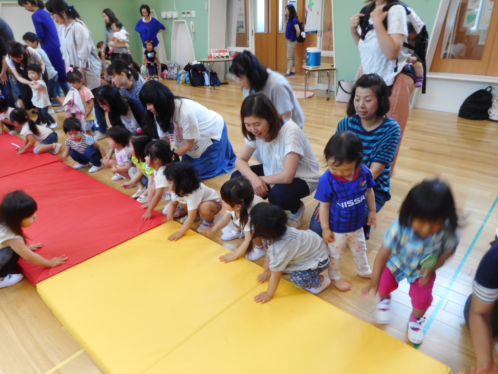 ながーい『大縄跳び』の部分は、落ちないように綱渡り。全てつなげて、縄跳びサーキットを楽しみました。