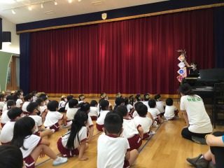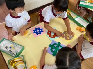 そして今日は七夕の集いを行いました。先生から七夕とは何の日かお話を聞きました。 子どもたちは、織り姫さま、彦星さまに興味津々で、静かにお話を聞いていました。