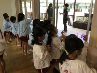 スタンプラリーでは、たくさんの隠れた先生たちを探しました。「どこだろう?」と子どもたちは必死に探しており、大盛り上がりでした。見つけた後は達成感でいっぱいでした。