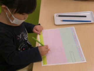 色鉛筆を三本指できれいに持ち、思い思いにお絵描きをしました。