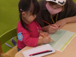 今回は『描く』ことに興味を持ってもらえるよう、お絵かきの活動を行いました。