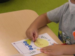 まず、探検に必要なスタンプカードに、自分の顔を描きました。