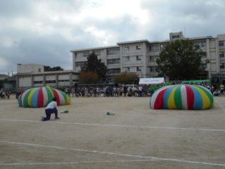 クラスのみんなで力を合わせたバルーンは、曲に合わせたくさんの技を決めることができました。中でも花火はきれいに上がり、たくさんの拍手をもらい、うれしそうでした。