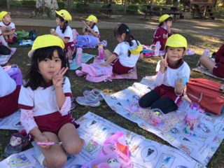 お芋掘りの後は、みんなでお弁当を食べました。お外で食べるお弁当はより美味しく大満足でした。