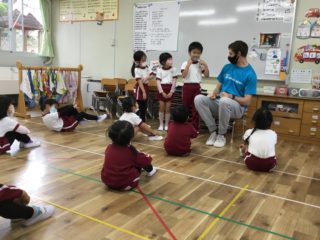 わかば幼稚園では、週2回英語の活動があります。また、英語以外の時間もバスに乗ったり、お部屋に入ってくれる英語の先生が子どもたちは大好きです。