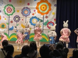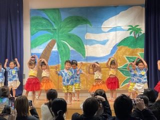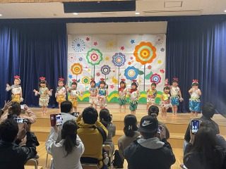 おひさまくらぶのお友だちは、衣装を着ることやたくさんのお客さんにドキドキしたことと思いますが、ステージでかわいらしい姿を見せることができました。