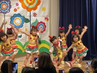 やはりドキドキしているお友だちもいましたが、大好きなおうちの人をステージから見つけると、うれしそうに踊っていました。