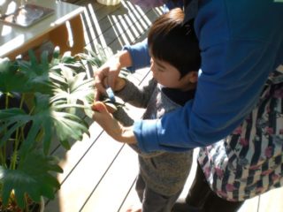 園長先生の植物の葉も、スポンジでそっと拭いてくれましたよ。