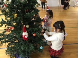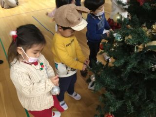 クリスマスツリーの飾りを、し忘れた先生のお手伝い。