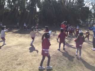 まずはお部屋で節分についての由来を聞き、お面や豆の袋を持ち、準備万端で公園に向かいました。