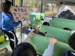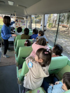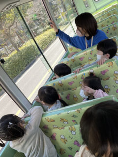 今回はわかば幼稚園の園バスに乗って、おでかけをしました。
