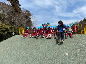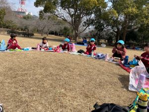 先生やお友だちとたくさん遊ぶことができ、「また遠足行きたい!」「楽しかった!」と大満足の様子でした。年少組での最後の楽しい思い出となりました。