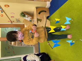 折り紙のちょうちょの他に、ビーズをひもに通したりもしました。