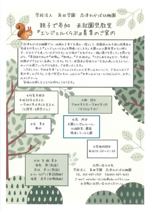 令和4年度『エンジェルくらぶ』の入会申し込みについて、下記のとおりご案内申し上げます。