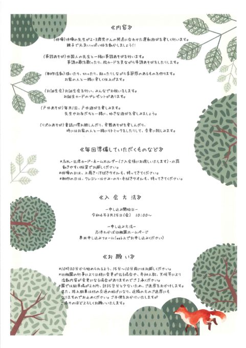 ご不明な点などございましたら。幼稚園(主任:吉田)までお問い合わせください。