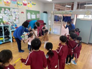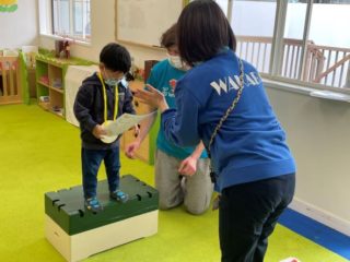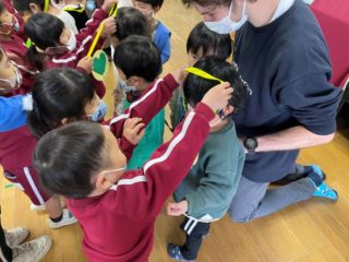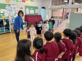いつものようにリトミックや英語あそびをした後、