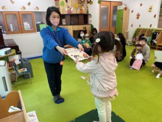 エンゼルルームに戻ると、今度は先生から一人一人に修了証書が渡されました。