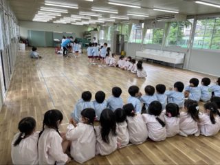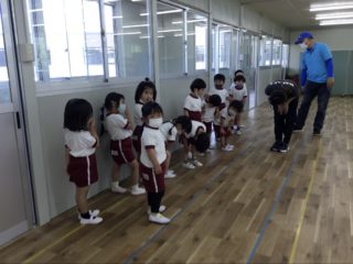年長組さんは、「よろしくお願いします。」と一人ひとり挨拶をし、静かに受けることができました。