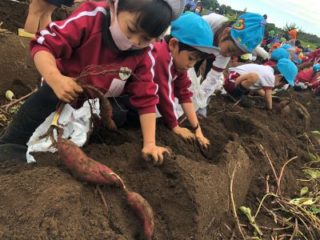 10月19日(水)にあやめ・ばら組、24日にこすもす・ゆり組でお芋堀り遠足に行きました。
