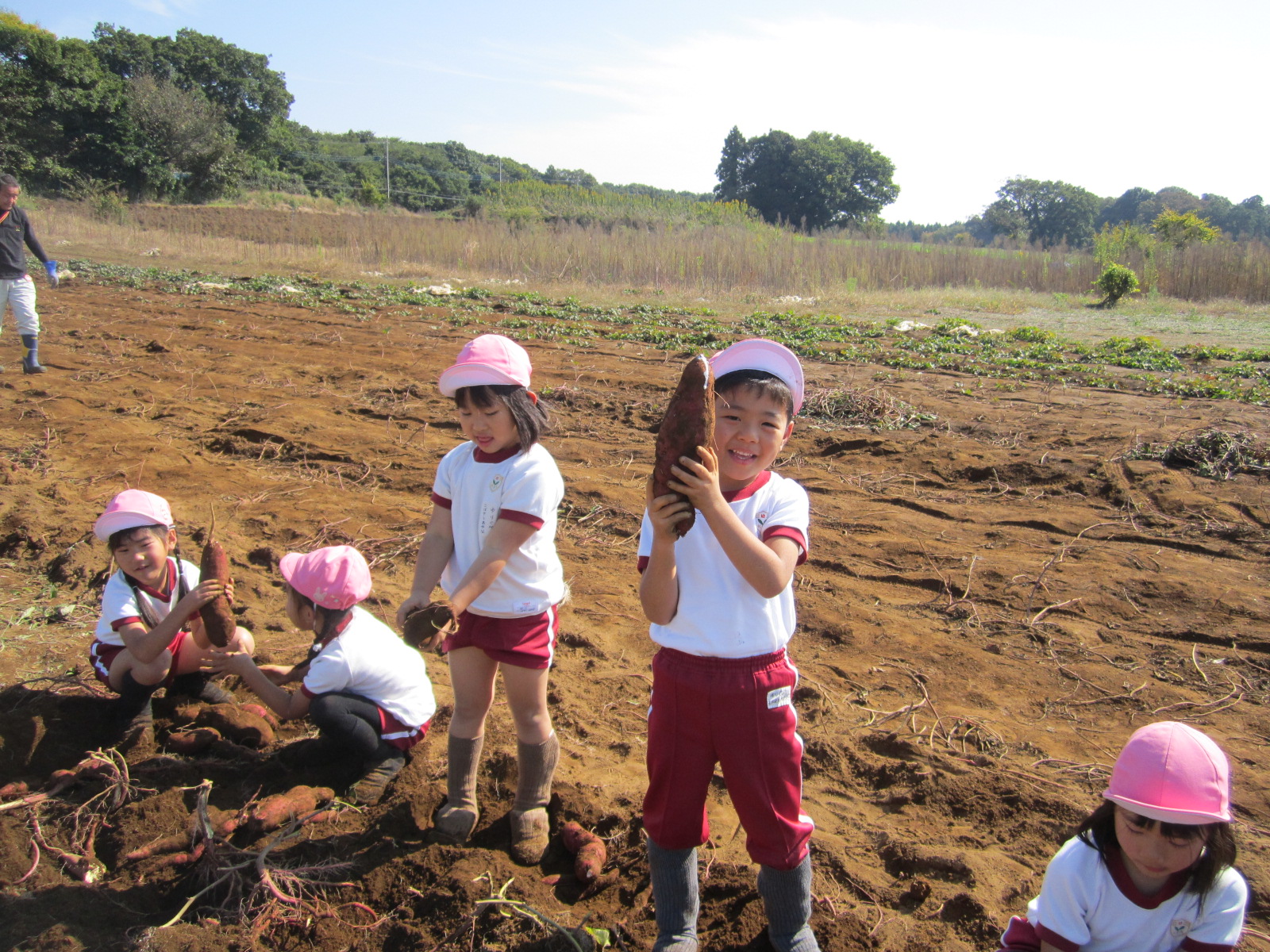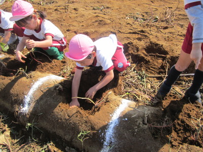 次々に出てくるお芋に、「お芋があったー!」とうれしそうな声がたくさん聞こえてきました。「先生見て!」と、見せてくれたお芋は、どれも大きく育っていて、子どもたちの表情も満足そうでした。