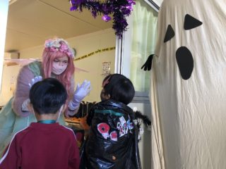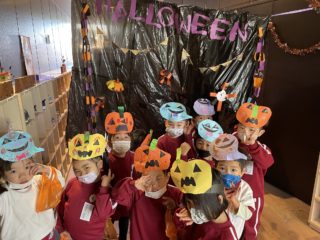 幼稚園でハロウィンを行いました。何日も前から「あと何回寝たらハロウィン?」と楽しみにしていた子どもたち。登園すると園内の飾りつけや音楽に気がつき、朝からワクワクした様子でした。