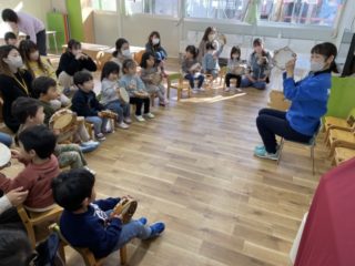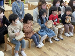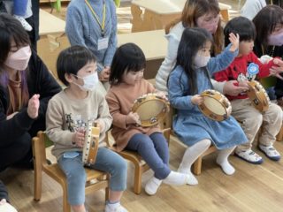 タンバリンは『チャチャチャ』の部分を三回叩くという練習をしました。