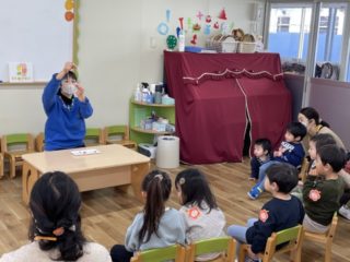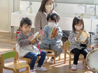 今日は、ビーズをひもに通す『ひも通し』をしたり、前回に引き続きタンバリンをおもちゃのチャチャチャに合わせて演奏したりしました。