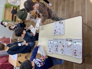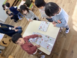 輪飾りは少し難しいかなと、心配でしたがお家の人にやり方を教えてもらい、夢中になってどんどん繋げていく姿がたくさんみられ驚きました。