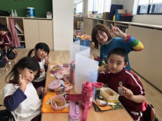 子どもたちは、英語の先生がおもちを食べているとすかさず『Yummy!?』と英語で質問をします。