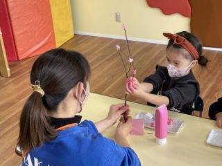 〈制作 ももの花づくり〉