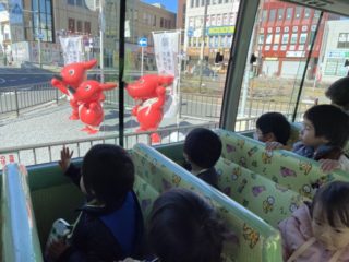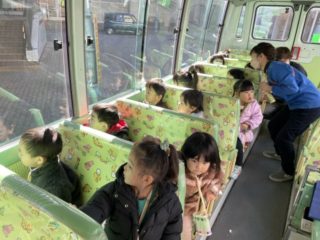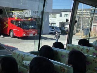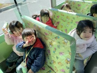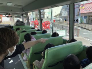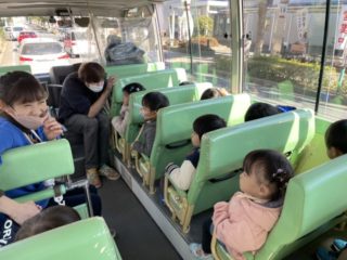 お家の人と離れて泣いてしまうお友だちもいましたが、バスが進むうちにだんだんと笑顔になっていき、最後は『消防車見つけたよ!!』と嬉しそうに保育者に教えてくれました。