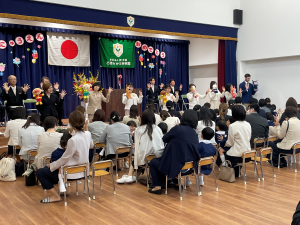 式では、理事長先生や園長先生のお話をお家の人と一緒に最後まで聞くことができました。