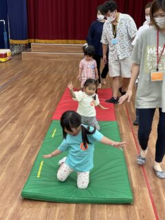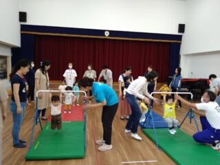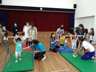 マットの上でいろいろな動きをしたり、鉄棒のぶら下がりにも挑戦しました。