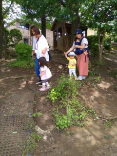 お砂場やすべり台、だんごむし探しなど、好きな遊びを見つけて過ごしました。